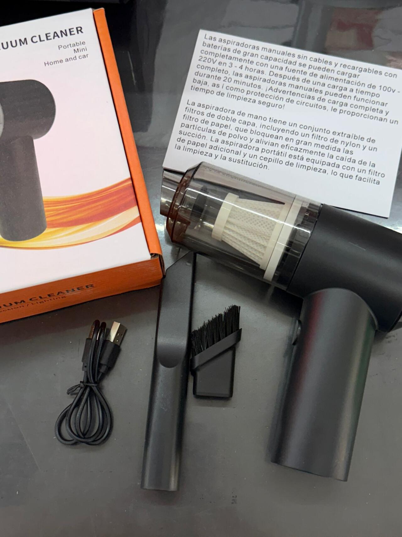 Descripción del Producto La Aspiradora de Mano Portátil 2 en 1 es una herramienta multifuncional compacta y potente que te ayudará a mantener tu hogar y vehículo impecables. Su diseño plegable y pequeño la convierte en la opción ideal para llevarla a todas partes. Con una succión de 12000 Pa, es capaz de limpiar fácilmente las esquinas difíciles, los huecos del coche y cualquier otro lugar inaccesible. Ya sea que necesites limpiar el sofá, el coche o cualquier rincón de tu casa, esta aspiradora lo hace todo, desde eliminar pelos de mascotas hasta absorber cenizas de cigarrillos.